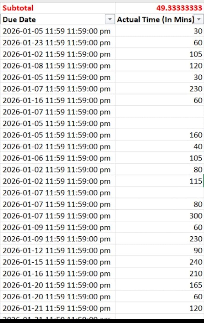 Monthly hours shown in the dashboard (total) do not match the hours shown in the exported excel for the same month